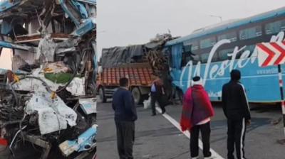 अलवर। राजस्थान के अलवर जिले में दिल्ली-मुंबई एक्सप्रेस-वे पर मंगलवार सुबह हुए भीषण सड़क हादसे में दो लोगों की मौत हो गई। वहीं, बस में सवार 31 यात्री घायल हो...