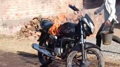 बोतल में पेट्रोल लाकर बाइक को लगाई आग, दुश्मनी में की वारदात