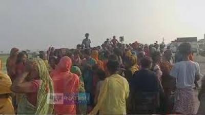 सड़क हादसे के बाद गुस्साए ग्रामीणों ने लगाया जाम