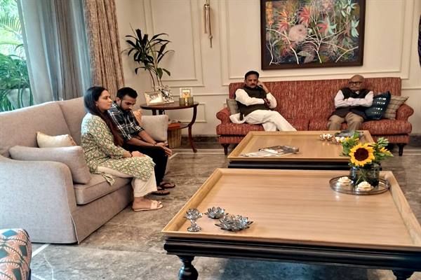 भोपाल : उप मुख्यमंत्री राजेन्द्र शुक्ल ने बुधवार को पूर्व मंत्री जयन्त मलैया के निवास पहुँचकर उनके स्वास्थ्य की जानकारी ली। उन्होंने मलैया के शीघ्र स्वास्थ्य लाभ की कामना की। उप मुख्यमंत्री शुक्ल ने विभिन्न विषयों पर मलैया से चर्चा भी की।