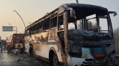 दिल दहला देने वाला हादसा: बस और लॉरी की भिड़ंत के बाद लगी भीषण आग, 12 की मौत, 20 झुलसे